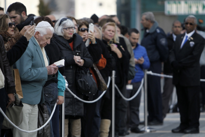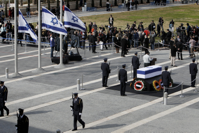 אזרחי ישראל עוברים על פני ארונו של שרון (פלאש90)דגלי ישראל בחצי התורן (פלאש90)