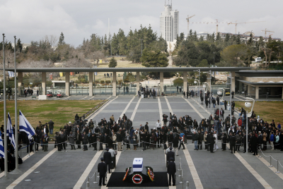 במשכן הכנסת נמשך טקס האשכבה של שרון. הנשיא פרס הניח זר ואלופי צה"ל הצדיעו לארונו. אזרחי ישראל עוברים ואומרים תהלים או מצטלמים. צפו בגלריית תמונות ממשכן הכנסת
