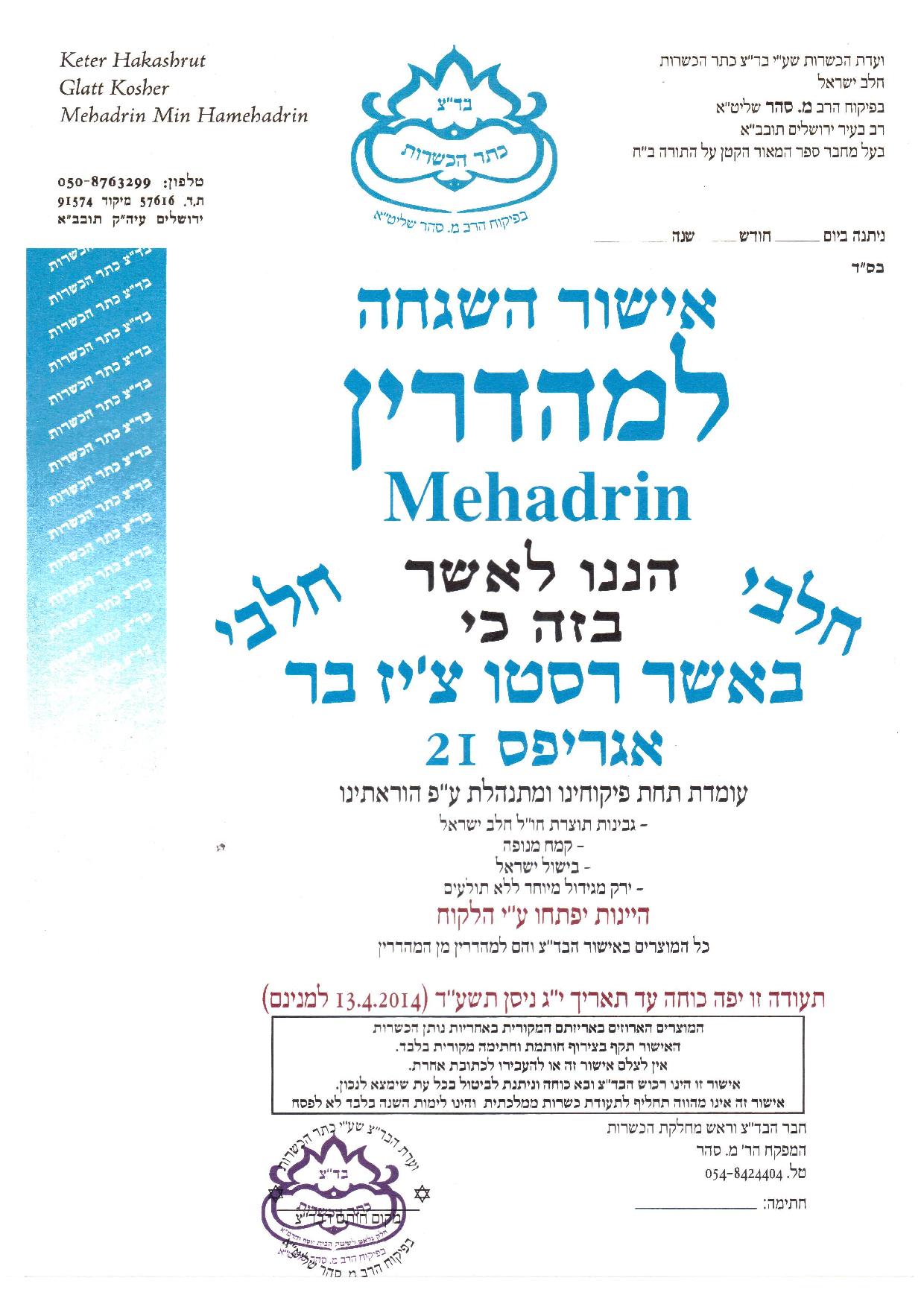 במעדניה נתפסו עשרות תעודות הכשר בלתי חוקיות למוצרים שונים, מטעם גוף כשרות המכונה "הרב משה אָלוּן צרפת", הגוף נבדק על ידי מחלקת היבוא ברבנות הראשית ונמצא כי השגחתו אינה מספיקה כדי לשווק מוצרים בארץ ככשרים מסיבות שונות, ביניהן חשד לסימון מוצרי חלב עכו"ם כחלב ישראל ועוד.