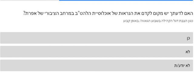 מגיבה נוספת דחתה את התגובה שנגד השאלון: "איך היד קלה על המקלדת? סביר להניח שאחד מילדיכם להט"ב ובגלל תגובות כמו שלכם פשוט חיי בסבל.