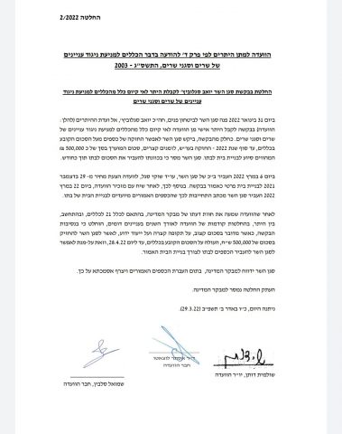 1) ומה בדיוק הבעיה שלכם ? סגן-השר הבט"פ סגלוביץ' פעל לפי כל !!! הכללים והוועדה אישרה לו. בטוחה שיפעל ע"פ האישור ויעביר את הכסף במועד שנקבע. ...