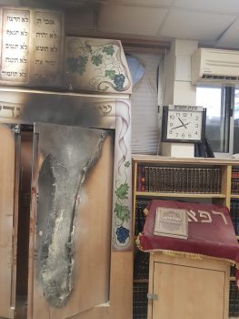 שוטרים שהוזעקו לבית הכנסת תפסו את החשוד לאחר שהצית טלית בבית הכנסת ובנוכחות השוטרים אף איים כי יהרוג את כל הרבנים ויגיע בערב לשרוף את בית הכנסת.