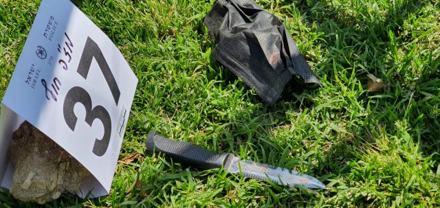 צוות שוטרי הסיור ששהה עם האב הגיב מיד לזירת האירוע בגן הזיכרון. שוטרת סיור שהבחינה בחשודה כאשר הסכין בידה ועצרה את החשודה במקום, כאשר סמוך למקום אותר תיק השייך לחשודה ובו נמצאו 2 סכינים נוספות שככה"נ התכוונה לעשות בהן שימוש.