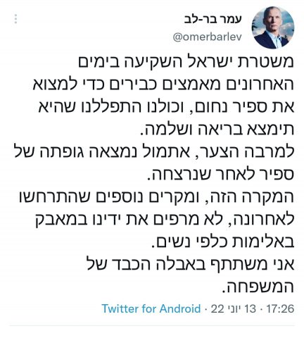 אני מקווה שלא נפגוש מקרים מזעזעים כאלו יותר. אני מקווה שגורמי הביטחון יפעלו בכל היכולות שלהם לסייע לנשים יהודיות שנמצאות בקשר עם ערבים לברוח מהאויבים שלנו. אני מוסר את תנחומי למשפחת נחום, שלא תדעו עוד צער.