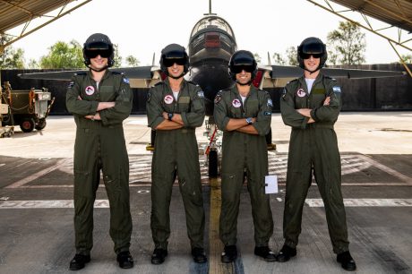 מח"א עם בוגרי קורס טיס על רקע F-16 ממלחמת לבנון הראשונה (דובר צה"ל)