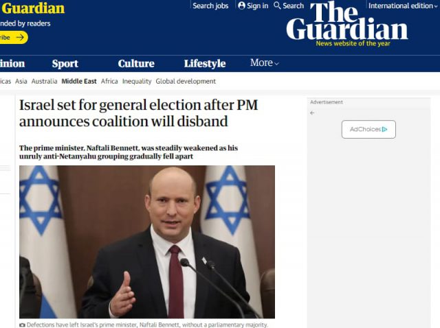 גם מחוץ לארה"ב נרשמו כותרות על ההתרחשויות בישראל. "בדרך לבחירות כלליות: ראש הממשלה הכריז על פירוק הקואליציה" נכתב באתר ה"גרדיאן" הבריטי. "נפתלי בנט נחלש בחודשים האחרונים כאשר קואליציית האנטי-נתניהו שלו קרסה בהדרגה".