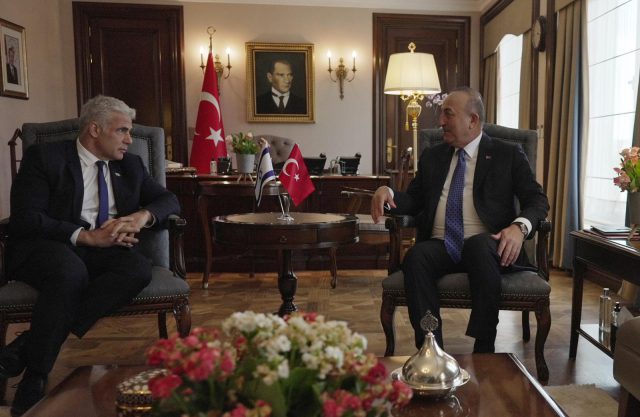 שר החוץ יאיר לפיד נפגש היום (חמישי) עם שר החוץ של טורקיה מבלוט צב'ושולו במסגרת ביקורו המדיני באנקרה, הנערכת על רקע המתיחות הנרחבת בצל החשש מפיגועי נקמה איראנים במדינה. בתום הפגישה, שני השרים נשאו הצהרות לתקשורת.