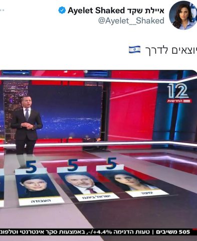 תחת הכותרת "יוצאים לדרך", שקד דם צירפה צילום מסך של סקר חדשות 12 שמעניק לה 5 מנדטים.
