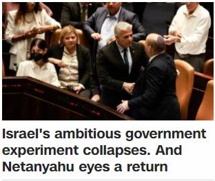 ברשת CNN האמריקאית נכתב כי "הניסוי השאפתני קרס, בעוד נתניהו שואף לחזרה". כמו כן הזכירו ברשת את העובדה שכהונתו של בנט הייתה אחת הקצרות ביותר בהיסטוריה הישראלית: "ביום שישי, ייכנס לתפקיד יאיר לפיד בהתאם להסכם הקואליציוני עם בנט".