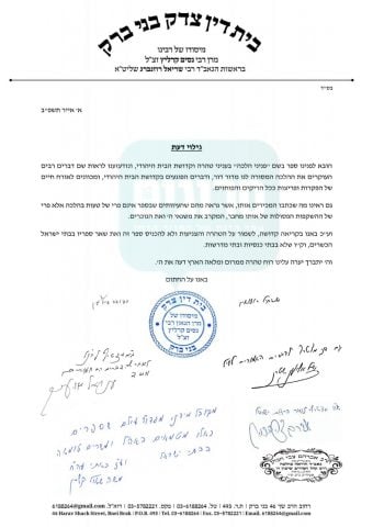 "ועל כן באנו בקריאה קדושה, לשמור על הטהרה והצניעות ולא להכניס ספר זה ואת שאר ספריו לבתי ישראל הכשרים, וקל וחומר לא בבתי כנסיות ובתי מדרשות", חתמו הרבנים.