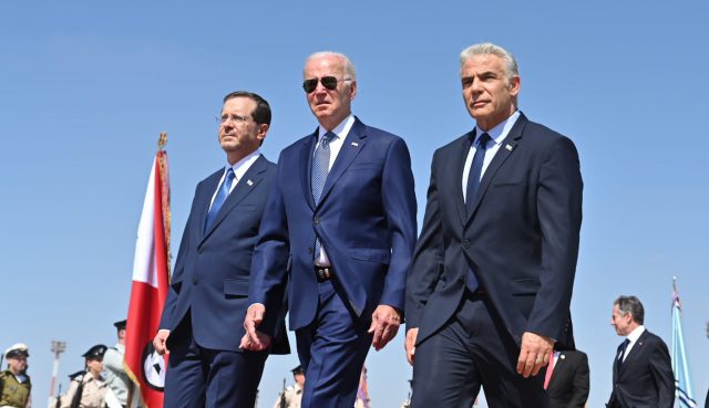 נשיא ארה"ב ג'ו ביידן נחת כעת (רביעי) בישראל לביקורו במזרח התיכון, כשאת פניו קיבלו בנתב"ג נשיא המדינה יצחק הרצוג, ראש הממשלה יאיר לפיד, וראש הממשלה החליפי נפתלי בנט. טקס קבלת פנים ממלכתי יכלול דברי ברכה קצרים, שטיח אדום, דגלים והתנגנו בו המנוני שתי המדינות.