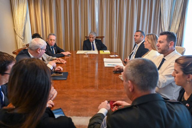 לשכת ראש הממשלה יאיר לפיד, מפרסת הבוקר את ישיבת ההכנה, לקראת פגישתו עם נשיא ארצות הברית ג'ו ביידן. תמונה מעין זו מופצת על ידי הדוברים, כך עשה גם נתניהו ומעניין להשוות את ההבדלים בין התמונות.
