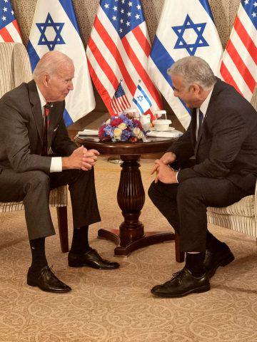 ראש הממשלה יאיר לפיד סיים את פגישתו עם נשיא ארצות הברית ג'ו ביידן בארבע עיניים, במסגרת היום השני בביקורו של הנשיא בארץ. לאחר הפגישה יקיימו השניים פגישה מורחבת עם הצוותים של שני הצדדים.