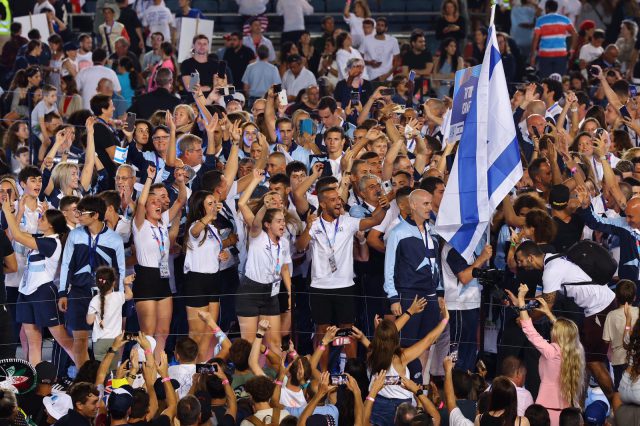 המכביה היא אירוע הספורט השלישי בגודלו בעולם, ואירוע הספורט היהודי הגדול ביותר, והיא נערכת אחת לארבע שנים ומשתתפים בה ישראלים ויהודים ברחבי העולם. המשלחת הישראלית חתמה את כניסת המשלחות לאצטדיון, וכללה כ-1700 ספורטאים וספורטאיות. בראש המשלחת צעדו שלומית טור ניר ויהודה ויינשטיין, ניצולי הטבח במינכן. לאחר מכן נערך טקס הנפת הדגלים והושמע המנון התקווה.