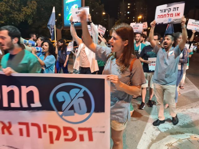 המפגינים המשיכו מרמת אביב וחסמו את צומת נמיר-קק"ל בצפון תל אביב