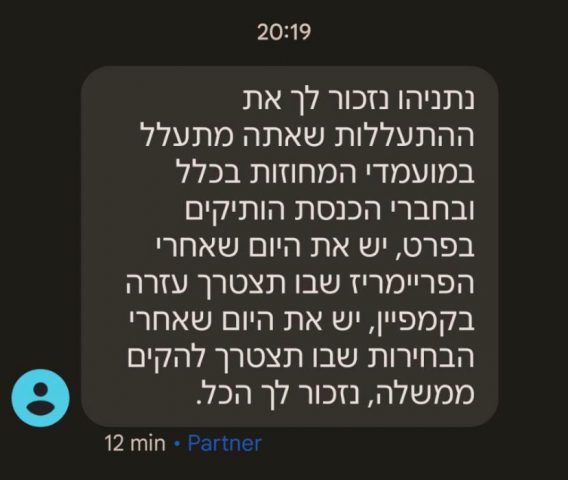 עוד הוסיפו: "יש את היום שאחרי הפריימריז שבו תצטרך עזרה בקמפיין, יש את היום שאחרי הבחירות שבו תצטרך להקים ממשלה, נזכור לך הכל".