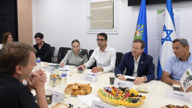 נשיא המדינה יצחק בוז'י הרצוג ביקר הבוקר (שני) בעיר שדרות, שם נפגש עם ראשי רשויות עוטף עזה: ראש העיר שדרות אלון דוידי, ראש מועצת אשכול גדי ירקוני, ראש מועצת שדות נגב תמיר עידאן, ראש מועצת חוף אשקלון איתמר רביבו וראש מועצת שער הנגב אופיר ליבשטיין.