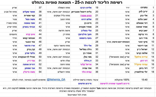 מוקדם יותר היום פורסמו התוצאות הסופיות של הפריימריז לרשימת הליכוד. חברי כנסת שהובילו את המאבק במערכת המשפט הצליחו להשתלב קדימה ברשימה, בעוד חברי כנסת ותיקים שנחשבו עד כה לבכירים נדחקו לשורות האחרונות של הרשימה.