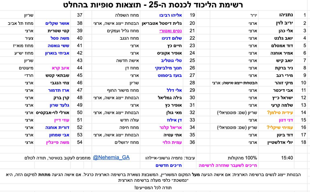 אז מי הח"כים שכבר לא יכהנו בכנסת הבאה מטעם הליכוד ומי החדשים ואלו שחוזרים? קבלו את רשימת הליכוד המלאה לכנסת ה-25.