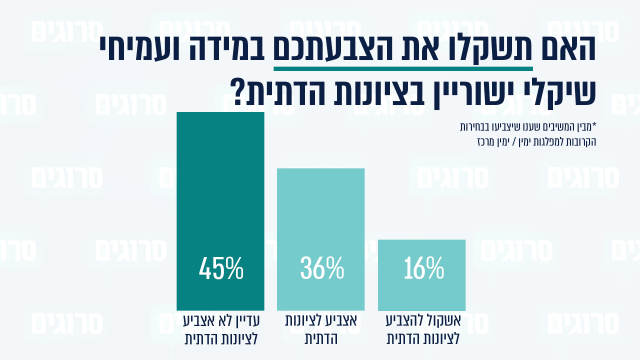 במענה לשאלה האם תשקלו את הצבעתכם במידה ועמיחי שיקלי ישוריין ברשימת הציונות הדתית, 45% מבין המשיבים שענו שיצביעו בבחירות הקרובות למפלגות ימין / ימין מרכז, ענו כי עדיין לא יצביעו לציונות הדתית, 36% ענו שיצביעו לציונות הדתית ו-16% השיבו שישקלו להצביע לציונות הדתית עם שיקלי ישוריין בה.