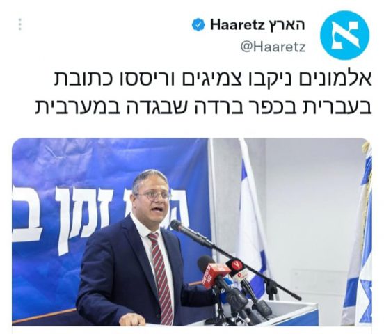 עיתון הארץ פירסם הבוקר (רביעי) כתבה על ניקוב צמיגים והשחתת רכוש של פלסטינים, אשר על פי החשד נעשה בידי יהודים. אלא שהתמונה שצורפה לכתבה הייתה של ח"כ איתמר בן גביר, למרות שאין לו שום קשר לאירוע.