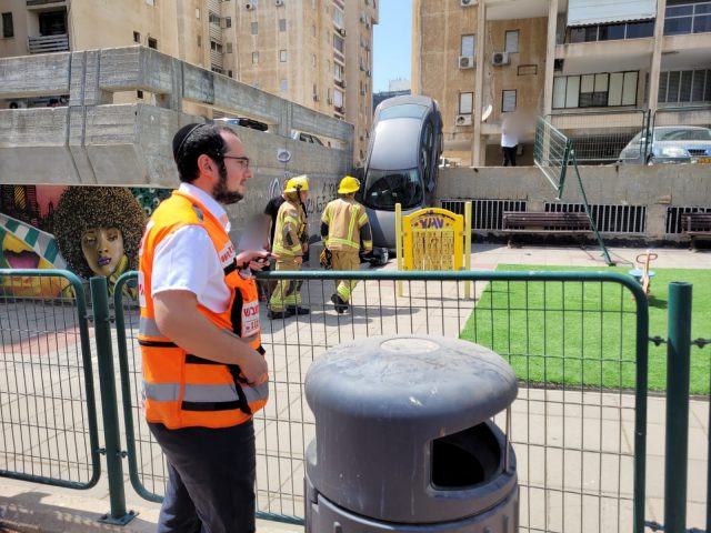 "מדובר ברכב שנפל מגובה (מחניון לתוך גן שעשועים). נהגת הרכב נפצעה באורח בינוני. לאחר הסיוע הראשוני בזירת התאונה היא פונתה לבית החולים אסותא כשהיא סובלת מחבלות ופציעות בראשה" מספר אברהם היינה חובש באיחוד הצלה שהעניק לה סיוע בזירה".
