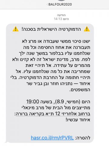 בהודעות שנשלחו נכתב: ״ישנו סיכוי ממשי שהעבודה או מרצ לא תעבורנה את אחוז החסימה וכל מה שחלמנו עליו בבלפור ילך לפח. מרב, מדינת ישראל זה לא קזינו ולא מהמרים על עתידה. אל תהיי זאת שמחריבה את כל מה שנלחמנו עליו. אל תהיי חתומה על החרבת הדמוקרטיה״. בסוף ההודעה קריאה להגיע להפגנה הערב בשעה 19:00 מול ביתה של מיכאלי בתל אביב.