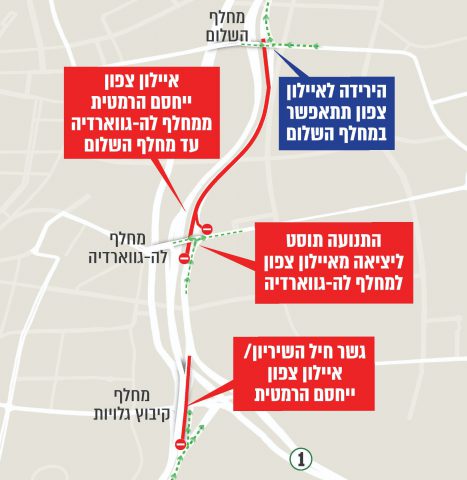 • התנועה תוסט מאיילון צפון/כביש 1 למחלף לה גווארדיה
