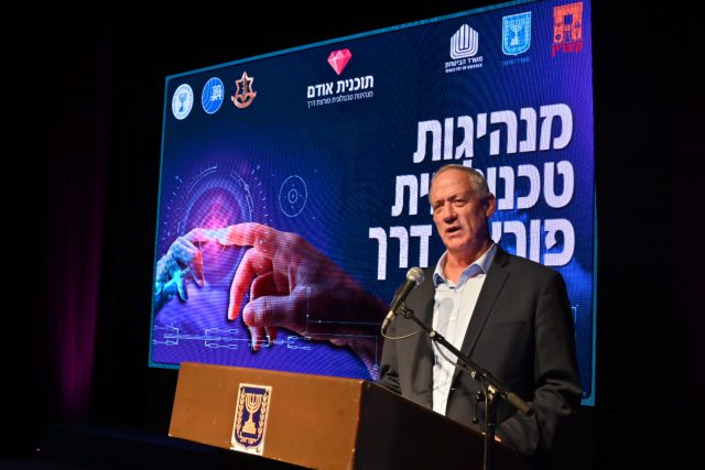 שר הביטחון בני גנץ, נאם היום (רביעי) בטקס לחניכת פרויקט "אודם" בהיכל התרבות בקצרין, במעמד ראש המועצה, ובכירים ממערכת הביטחון ומשרד החינוך.