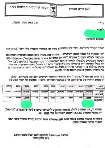 לכבוד סיום שנת השמיטה, בקיבוץ חפץ חיים מפרסמים את ברכת ה' שהייתה להם בשנה השישית, בה התקיים בהם הפסוק: "וְצִוִּיתִי אֶת בִּרְכָתִי לָכֶם בַּשָּׁנָה הַשִּׁשִּׁית וְעָשָׂת אֶת הַתְּבוּאָה לִשְׁלֹשׁ הַשָּׁנִים". (ויקרא כ"ה).