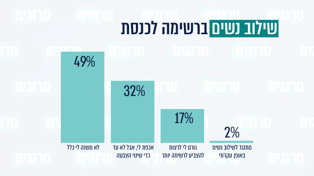 בנוסף, הסקר בדק כיצד שילוב נשים ברשימה לכנסת משפיע על אופן ההצבעה של הציבור הדתי לאומי. 17% השיבו "גורם לי לרצות להצביע לרשימה יותר", 49% השיבו "לא משנה לי כלל", 32% "אכפת לי, אך לא עד כדי שינוי הצבעה" ו2% ענו שהם מתנגדים לשילוב נשים באופן עקרוני.