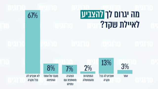 שאלה נוספת שהוצגה לנשאלים הייתה "מה יגרום לך להצביע לאיילת שקד". באוגוסט, ענו 81% כי לא יצביעו לה בכל מקרה, כיום, חלה מגמת שיפור במצבה של שקד, ואחוז המתנגדים לה עד כדי כך ירד ל-67%. במקביל, אחוז הנשאלים שהשיב "אצביע לה בכל מקרה" עלה מ-7% ל-13%.