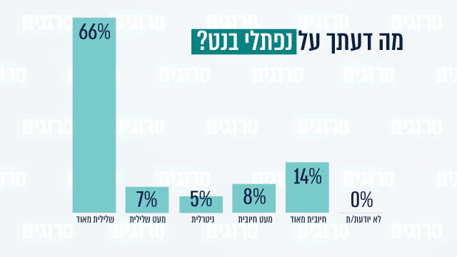 לגבי בנט, הנתונים שונים משמעותית. 66% מהנשאלים בציונות הדתית השיבו כי דעתם עליו שלילית מאוד, 14% חיובית מאוד, 8% מעט חיובית, 7% מעט שלילית ו-5% בעלי דעה ניטרלית לגביו.
