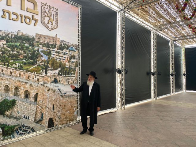 רגע לפני החג הגיע רבה של ירושלים, הגאון רבי שלמה משה עמאר, הגיע לסוכת הענק לבדוק את כשרותה ולוודא שרבבות המבקרים ייהנו מסוכה על פי כל ההלכות וההידורים