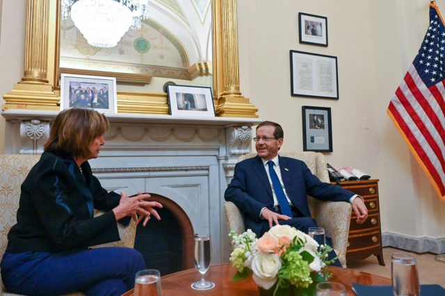 נשיא המדינה יצחק הרצוג השוהה בביקור מדיני בארה"ב, נפגש אתמול (ג') עם יושבת ראש בית הנבחרים של ארצות הברית, ננסי פלוסי, בגבעת הקפיטול. זהו ביקור תגמולין, אחרי שבחודש פברואר האחרון, הנשיא ורעייתו אירחו את פלוסי בבית הנשיא בירושלים, כשעמדה בראש משלחת קונגרסיונלית.