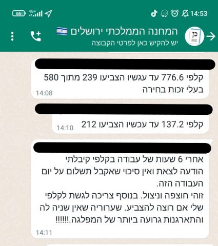 בשעות הצהריים שלח רכז של המפלגה הודעה בקבוצת עובדי הקלפיות בה נכתב בין השאר: "כל מי שלא קיבל כתב מינוי והוא משובץ למשרת ערב/כפולה – המשמרת מבוטלת – לא להגיע אליה (אם אין כתב מינוי לא יתקבל תשלום)".