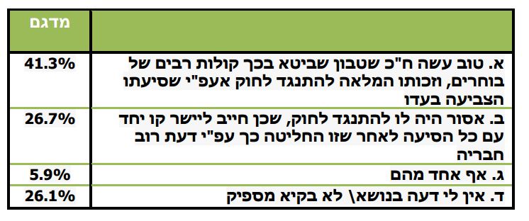 בהתחשבות רק בבעלי הדעה בסוגיה, וניכוי המשיבים שציינו כי אין להם דעה בנושא, מתקבלים הנתונים הברורים יותר: