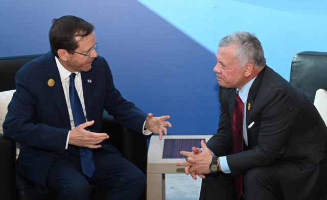 נשיא המדינה יצחק הרצוג נפגש כעת עם מלך ירדן, עבדאללה השני, בועידת האקלים COP27 בשארם א- שייח׳ שבמצרים.