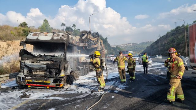 תקרית קשה בכביש אחד: משאית נשרפה היום (חמישי) בכביש וגרמה לחסימת הכביש לשני הכיוונים.