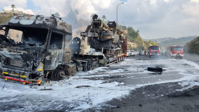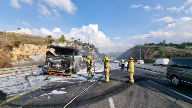 סמוך לשעה 13:05 התקבל דיווח על שריפת משאית בכביש, בנתיב לכיוון תל אביב. 5 צוותים של כבאות והצלה לישראל הוזנקו למקום. הכביש נחסם לתנועה משני הכיוונים על ידי משטרת ישראל. "צוותי הכיבוי עובדים במקום לכבות את הבעירה. מסריקה ראשונית עולה כי אין לכודים או נפגעים במקום" כך נמסר מוקדם יותר מכבאות והצלה.
