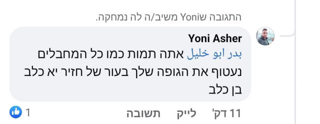 אחד המגיבים איים על חייו של ח"כ בן גביר וכתב "איתמר בן גביר, אתם הולכים להירצח בקרוב. ישחטו אתכם כמו חזירים".
