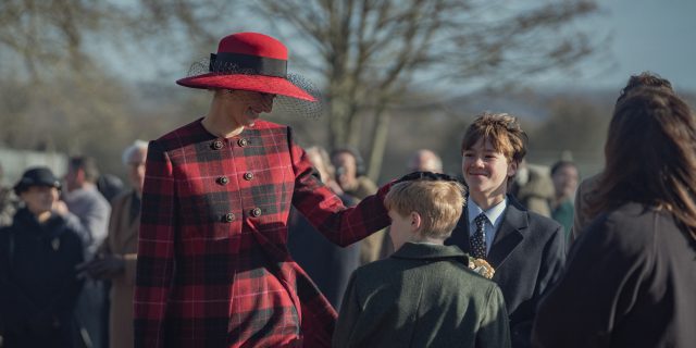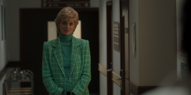 החליפה הסגולה, משדרת אלגנטיות באופן מושלם עם תכשיטי הפנינים. באותו הפרק דיאנה מנסה להתפייס עם המלכה ויתכן שבחירת הבגדים מעידה על כך גם כן.