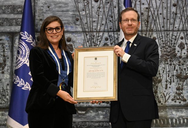הנשיא יצחק הרצוג העניק הערב (ראשון) בטקס חגיגי בבית הנשיא את "עיטור הנשיא" למשוררת רחל שפירא, תא"ל במיל' פנחס בוכריס, ד"ר דליה פדילה, ד"ר חיים פרי ומנהיג מיהדות ארה"ב מייקל סיגל.