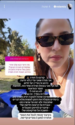 המגישה והפרשנית רותם ישראל, משתפת במסגרת "שאלות ותשובות" באינסטגרם על עתידה המקצועי.