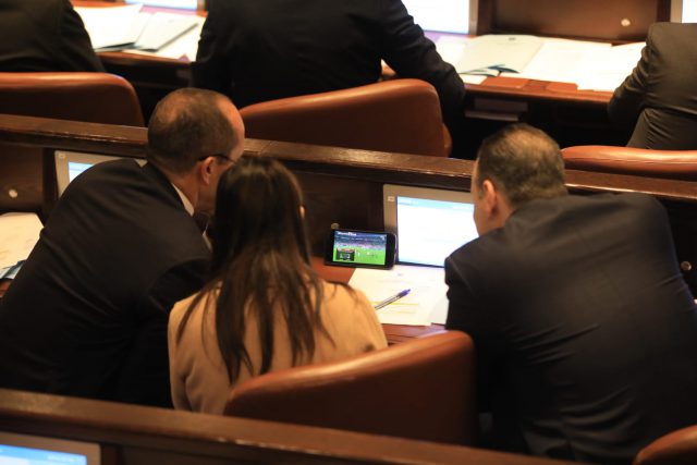 הצלם משה מזרחי תפס את הח"כים צופים בכדורגל