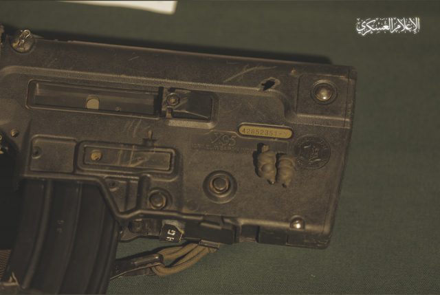 כאמור, ההישג הגדול שהתפאר בו חמאס בעצרת הוא הנשק של הדר גולדין, כשבנאום מלא פאתוס, הקריא רעול פנים את המספר הטבוע בנשק, כדי להוכיח כי מדובר בנשק האותנטי. הנשק הוא מסוג תבור מקוצר, עם כוונת מיוחדת מתוצרת אלביט, ועל הנשק עדיין תלויים השיפצורים המקוריים.
