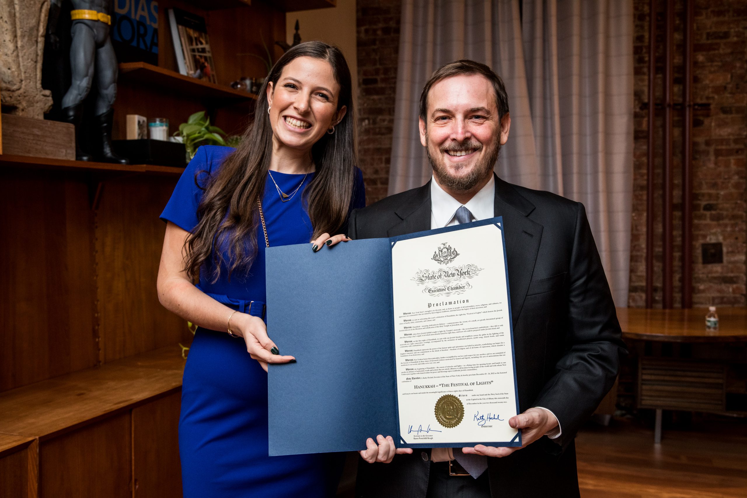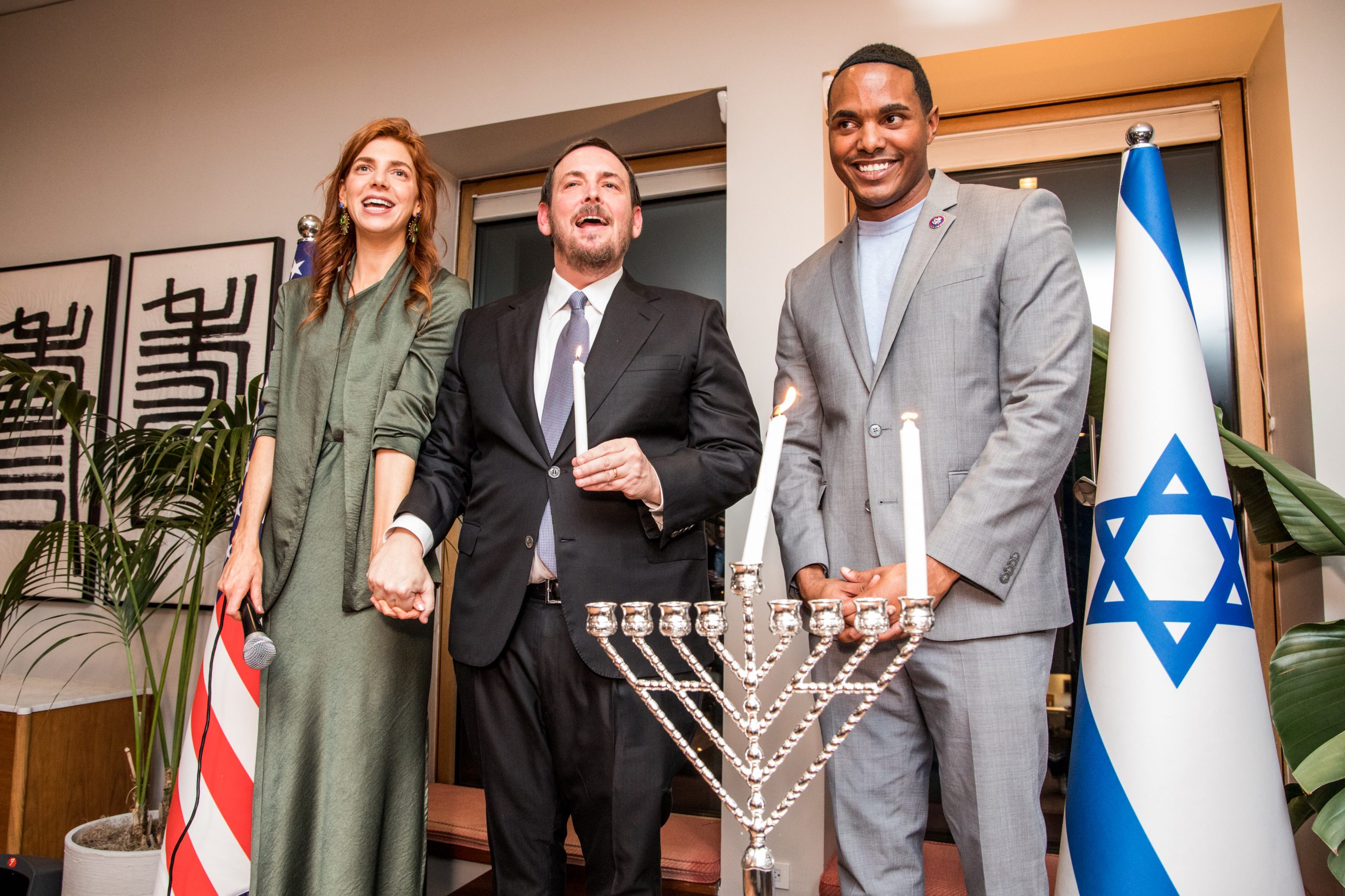 הקונסול הכללי בניו יורק, אסף זמיר ואשתו השחקנית מאיה ורטהיימר אירחו אירוע חנוכה חגיגי והדלקת נר ראשון בביתם אמש (ראשון).