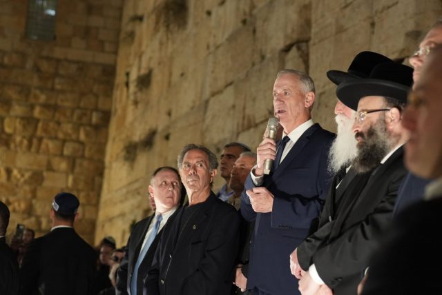 שר הביטחון בני גנץ הותקף הערב בצעקות כאשר יצא מהדלקת נר שלישי של חנוכה בכותל המערבי.