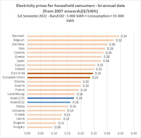 למרות העלייה במחיר, ברשות החשמל טוענים כי מחירי החשמל בישראל עדיין נמצאים מתחת לממוצע בעולם. לדבריהם, המחיר לקילוואט-שעה בישראל עמד השנה על 0.16 יורו ויעלה ל-0.18 יורו בינואר, בזמן שהמחיר הממוצע במדינות האיחוד האירופי עמד על 0.25 יורו, והגיע עד ל-0.34 יורו בדנמרק, 0.32 יורו בבלגיה ו-0.30 בגרמניה.