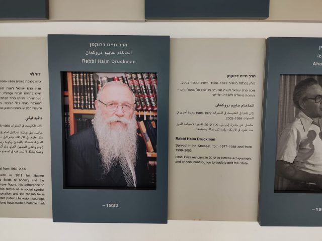 עוד לפני פטירתו, הרב דרוקמן כבר קיבל מקום של כבוד בתערוכה מיוחדת שמעטרת את הכנסת על קיר חברי הכנסת שגם זכו בפרס ישראל.